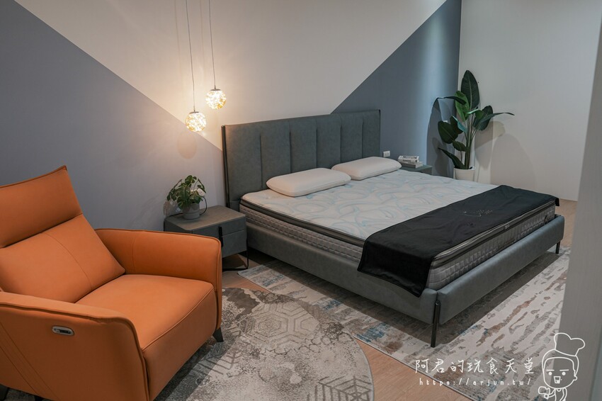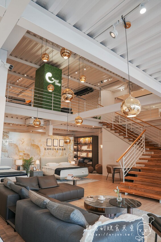好睡王中清旗艦店,主要有兩層樓,一樓主要為臥室傢俱,如床架、床墊、床頭櫃、化妝台等,二樓則是有義式沙發、電動沙發、牛皮沙發、客廳、餐廳的精品,整體參觀動線、規劃以及佈置都很有條理及氛圍,而且空間夠很大,逛起來很舒適。