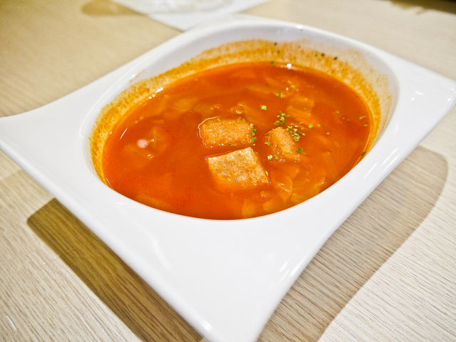 湯裡的麵包丁很搭,這道加一點胡椒會更好些