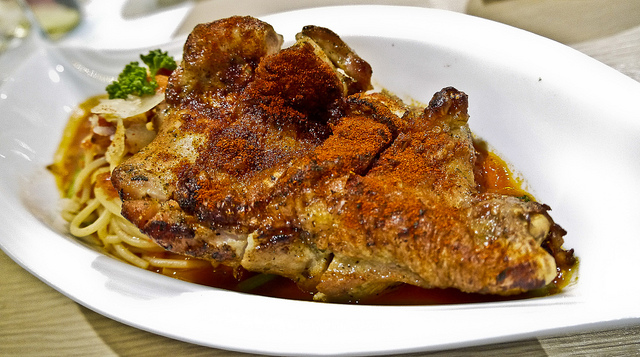 ●主菜: 茄汁魔鬼雞腿義大利麵 ( NTD 250 )