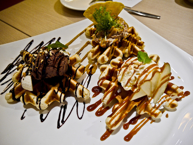 ●甜點:綜合比利時鬆餅 ( 經典香蕉巧克力, 西西里鮪魚, 焦糖蘋果 NTD 200 )