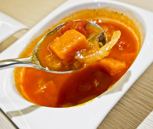 蕃茄蔬菜牛肉湯則料很足