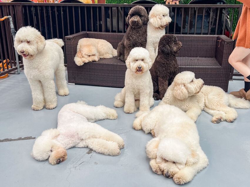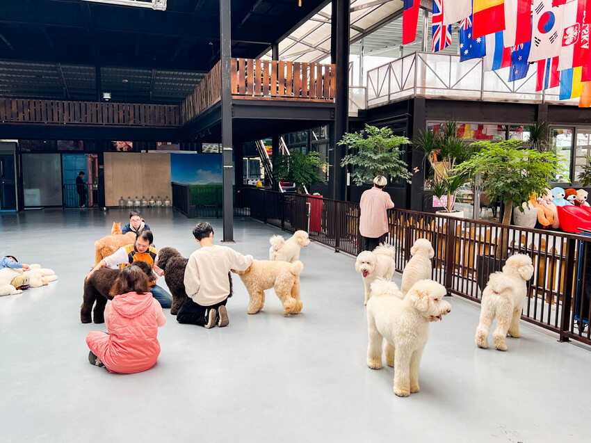 別人的狗狗最好玩!老闆養了十隻可愛的巨型貴賓犬,毛茸茸的非常摸,而且來這裡都可以跟狗狗一起玩跟拍照,狗狗們也都不怕生,都可以摸或抱,而且很聰明也會服從店員們的指令,排排站拍照,平常不大可能會在家裡養這麼大的狗,來這邊就可以一圓跟大狗狗玩的夢想