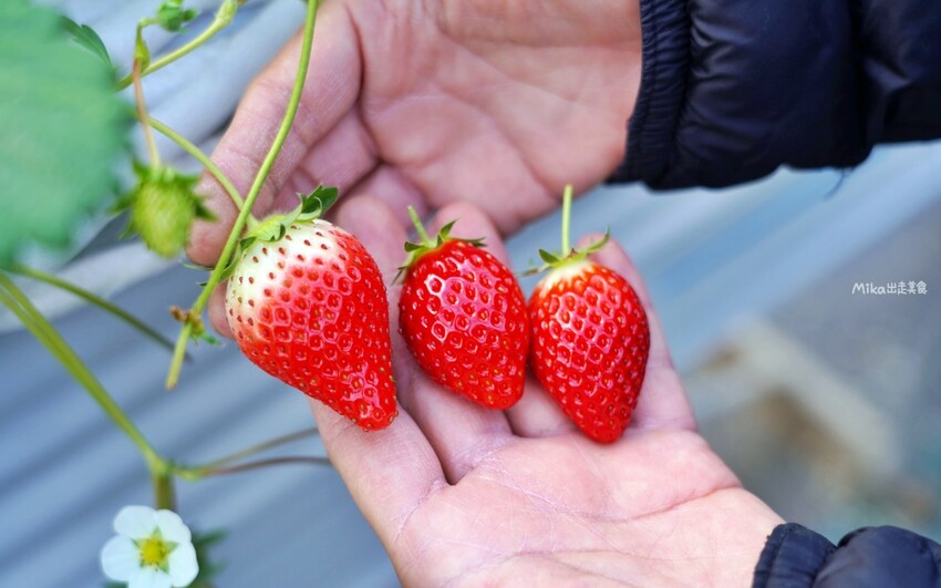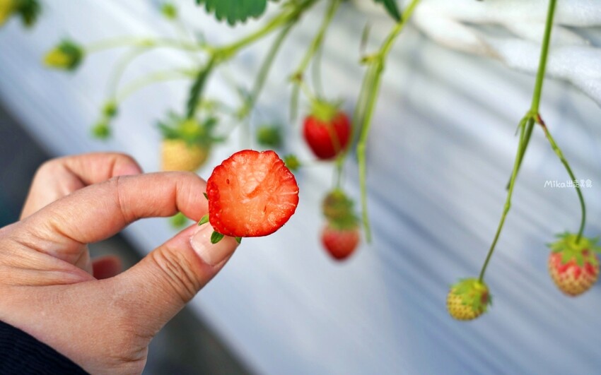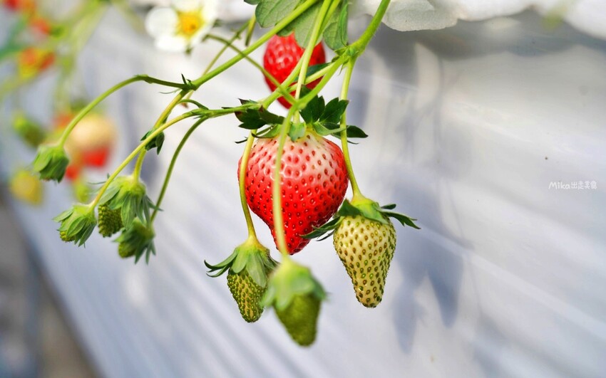 尾端有點白白的就不要採了,那樣的草莓還不夠好吃。