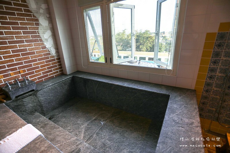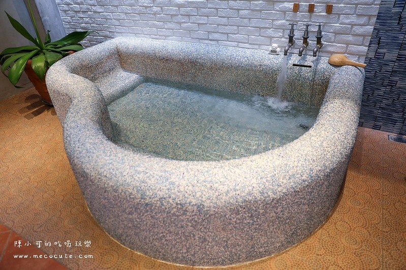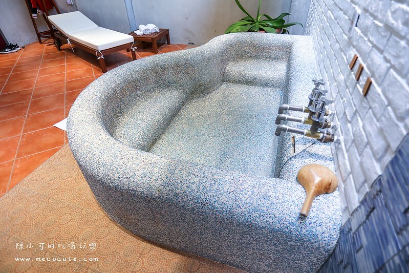 充滿文青氣息的浴池也蠻大的,水溫也很夠,重點是泡湯九十分鐘相當足夠。
