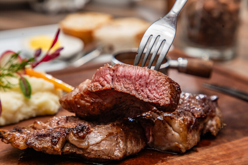美國特選級肋眼牛排10oz,選用U.S. Prime等級肋眼牛排,以炙熱高溫烹調方式快速封鎖牛排肉汁,能讓牛排的香味、肉汁完全封鎖在其中,五分熟生不帶血,剖面呈現漂亮猶如櫻花般的粉嫩色澤,肉質非常軟嫩邱起來毫不費力