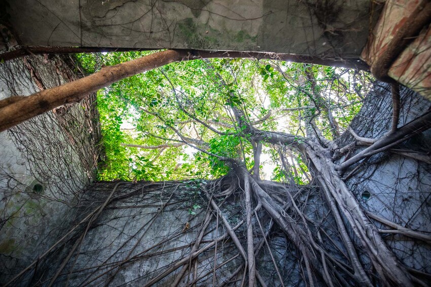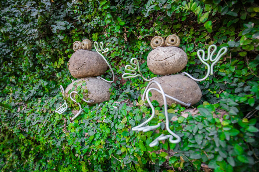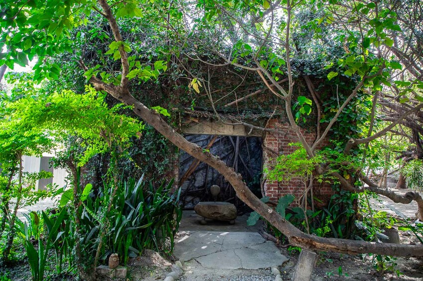 天井紅屋,算是十鼓文創園區蠻隱藏版的拍照景點,天井紅屋是日治台灣時期的磚結構建築,以其年久風化的屋頂橫樑,隨著時間的推移屋頂的橫樑已經老化。也因其獨特的(天井)而得名,反映了其歷史特色,旁邊樹上還有青蛙裝置藝術,不妨來找看看吧!