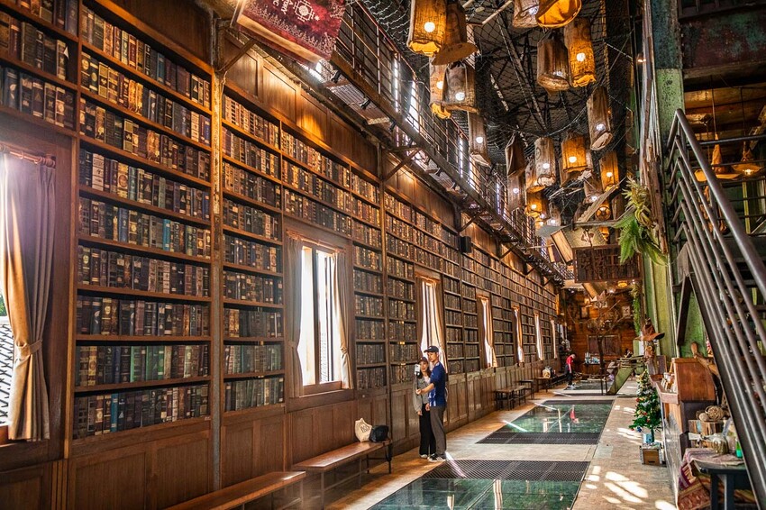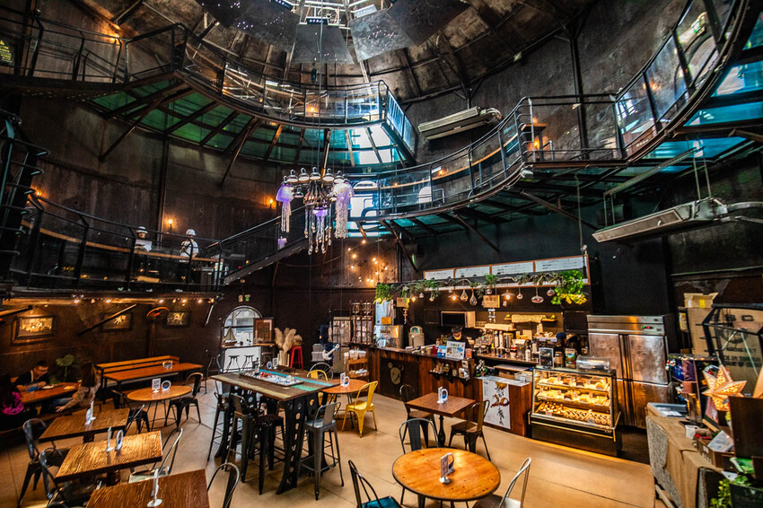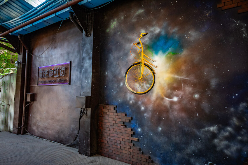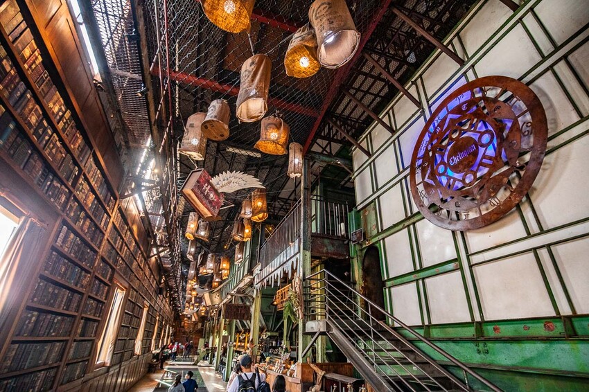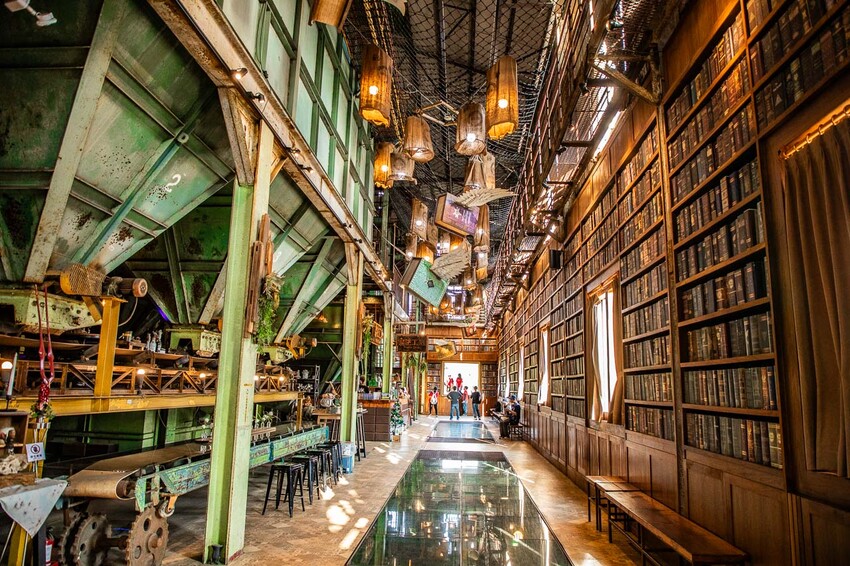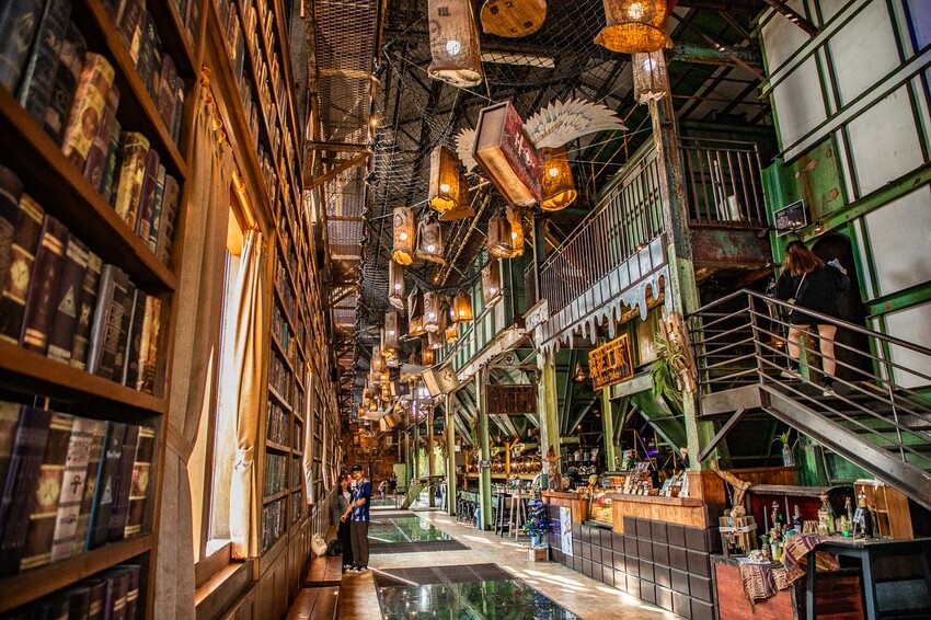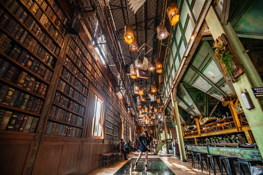 魔法工廠,魔法工廠是十鼓文創園區2023年新改裝的的景點之一!這裡真的超級熱門,剛開放之初IG上基本上都是洗版狀態,唯美玻璃長廊加上光影變化,牆面上還有大書櫃造景,打造出猶如哈利波特電影魔法學院般的場景,超級夢幻!