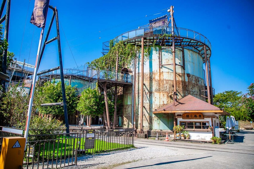 糖蜜三連罐,三座糖蜜罐分別為民國30年、50年,及72年建造而成,經十鼓改造後成為車路墘文史館、蜜橋咖啡館與兒童遊戲室,糖罐跟糖罐中間還有小朋也可以玩的沙坑遊戲區