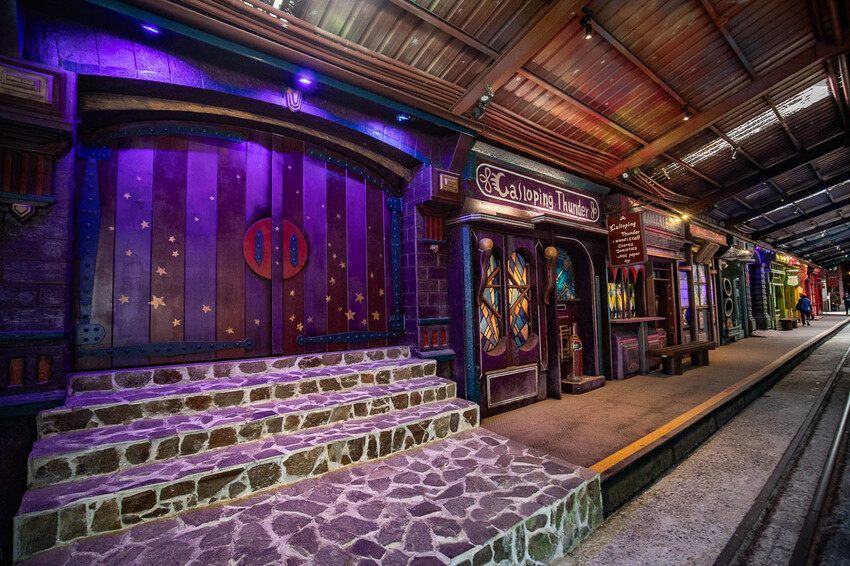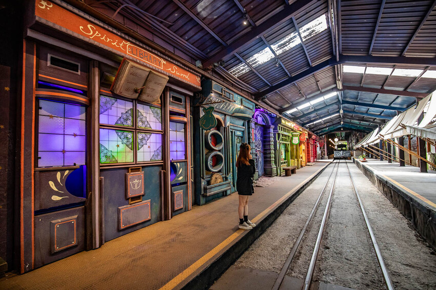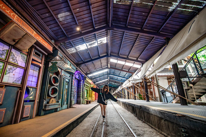 當列車抵達終點站時,就可以往回走到魔法列車經過的魔法彩虹街,色彩繽紛的魔幻商店,這裡可是不少網美們的取景熱點