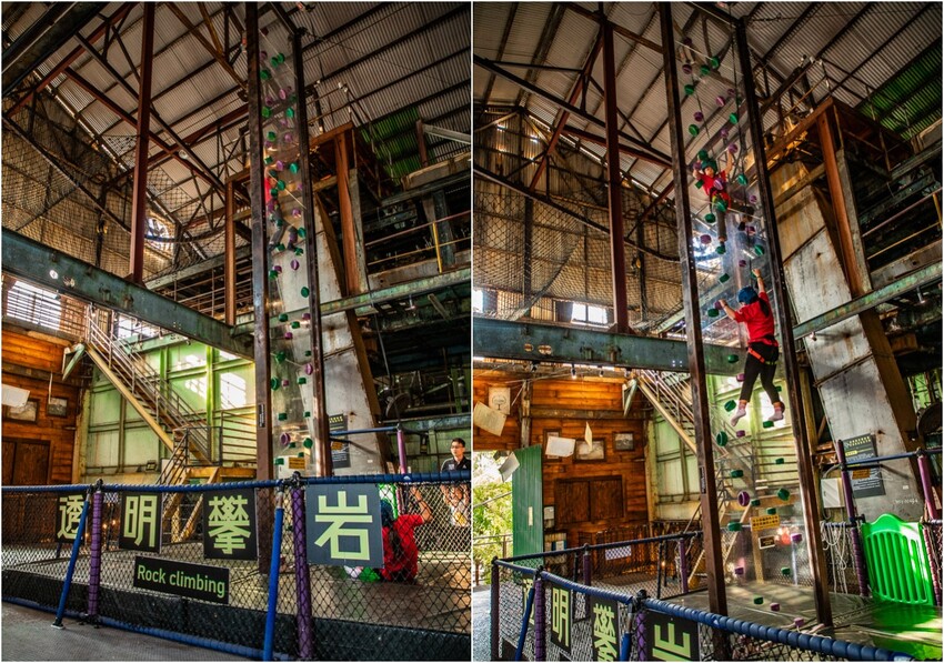 透明攀岩牆,全台首創的透明攀岩競技牆高達9公尺,雙面全透明懼高的爬上後絕對會雙腳發軟,透明強化玻璃牆面除了增加挑戰難度及刺激感,也能讓參加競技挑戰的朋友可以觀察對手,非常具有挑戰性,但非常耗體力就是了