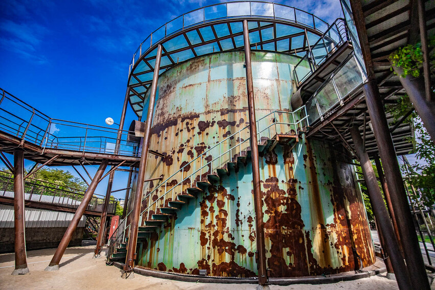 天堂路,十鼓文創園區指標性的拍照景點之一,步道就架設在屋頂上,高度達11層樓,也是十鼓文創園區的制高點,可以居高臨下鳥瞰整個十鼓文創園區的景緻,天堂路真的超好拍,美照連發!