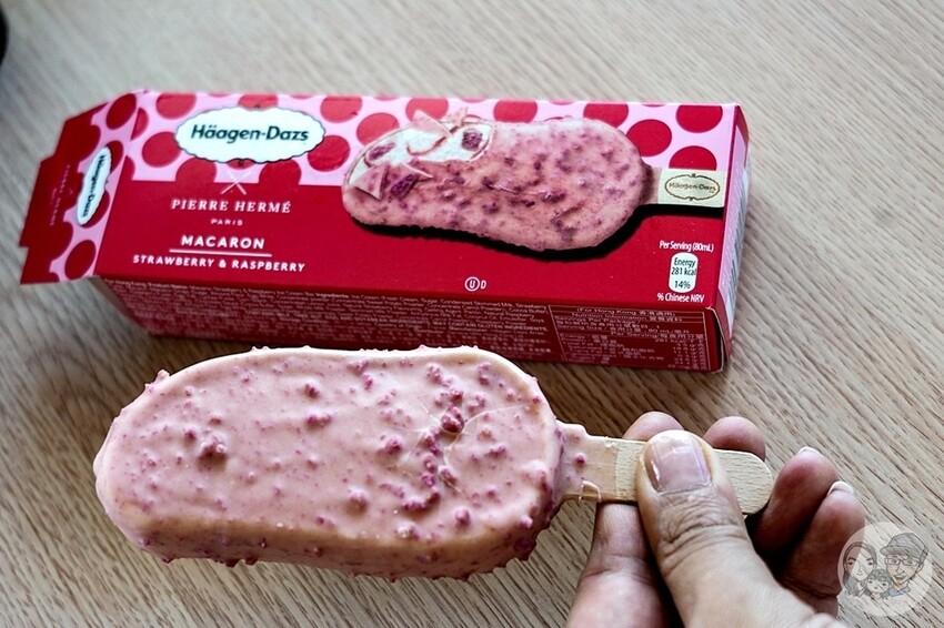 店員會先去冰箱拿一支Häagen-Daz哈根達斯草莓覆盆子馬卡龍雪糕,
