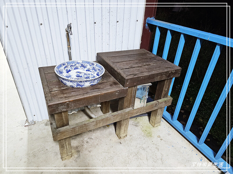最妙的是洗手台,竟然是復古大臉盆XD,這風格與圖案,搭配木製桌面,差點覺得時間要倒流了,感覺用這洗手台要喊聲皇上吉祥😂😂。