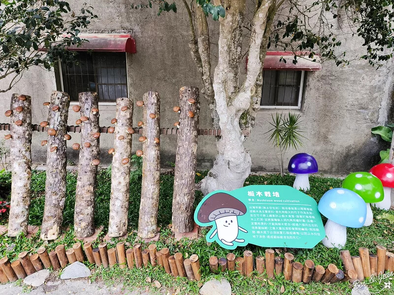 停好車後,沿著步道就可以看到不少可愛的菇菇看版,寓教於樂非常有趣,而最後抵達到後方的遊客展售中心