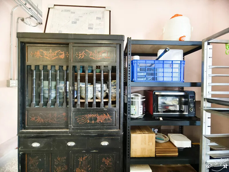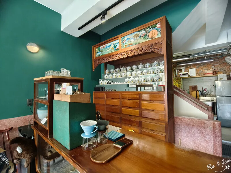 背後的中藥櫃很吸睛,和磨石子地磚很搭,很古味吧。有種穿越時空的感覺