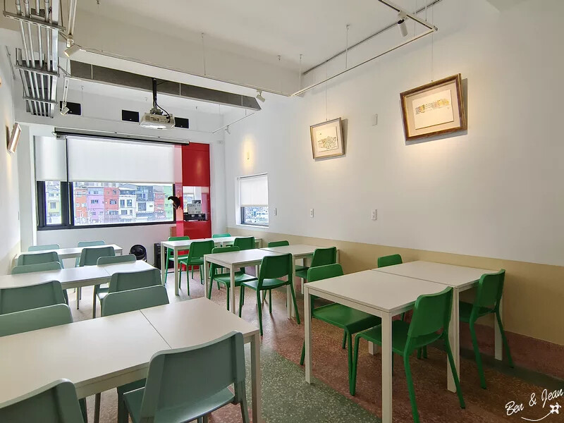 二樓的咖啡空間,設計色調清爽宜人