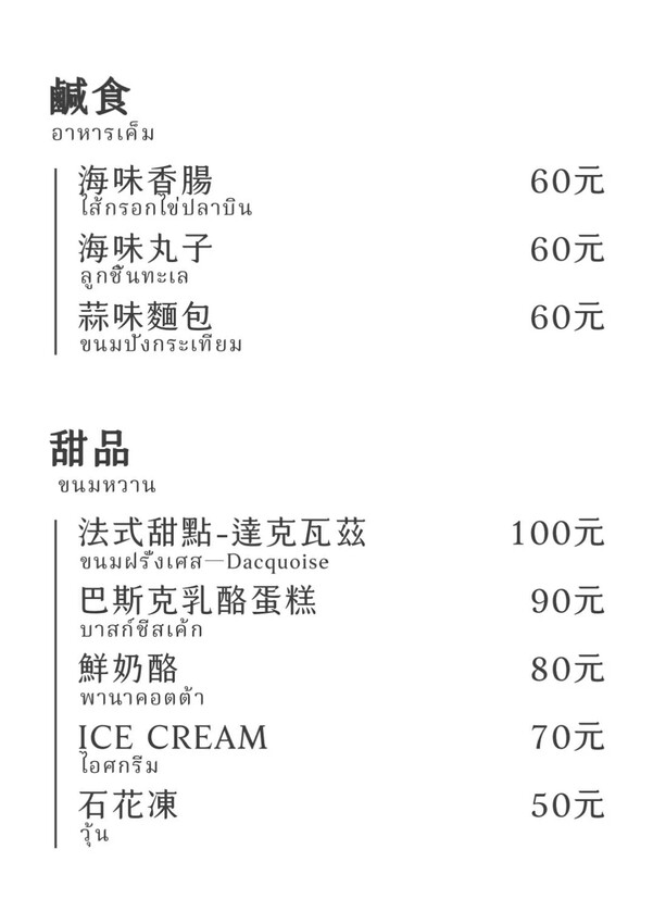 套餐內容包含飲料、甜品、鹹食、麵包