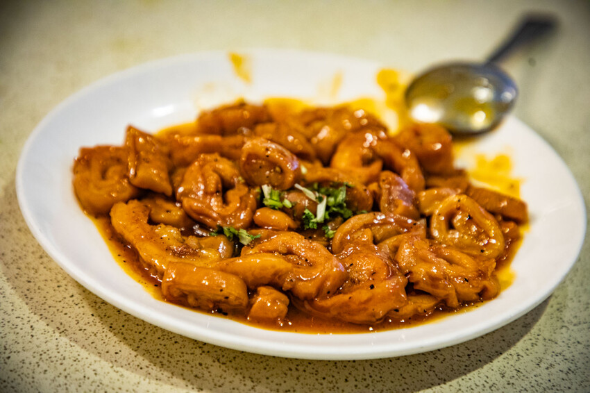 宋廚大腸,據說是必點招牌菜,大腸處理得極好,不僅沒有腥味,吃起來超級軟嫩,加上夠味的特調黑椒醬汁煨炒,吃起來多汁又非常夠味,微辣感挺刺激味蕾食慾的