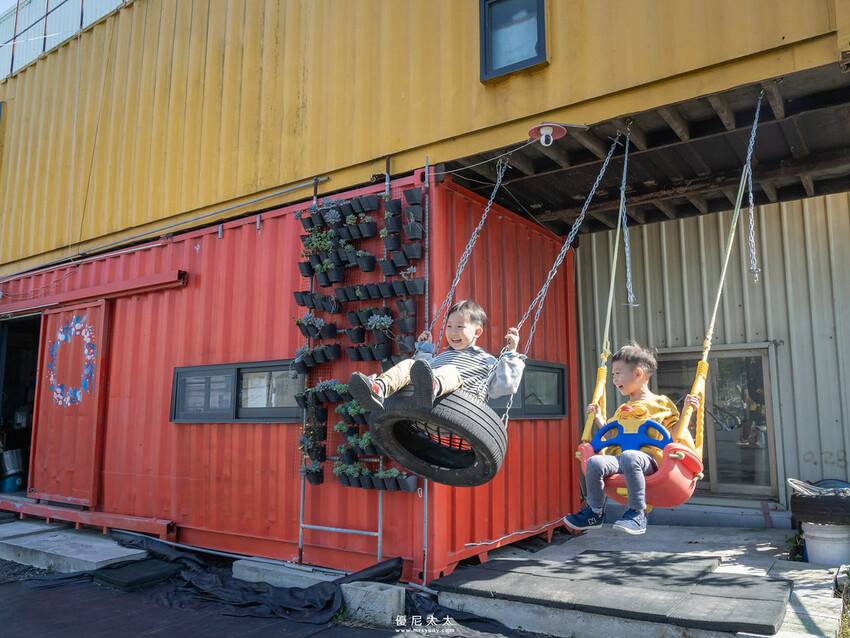 農場內有繽紛的貨櫃屋,其間搭配著可愛的盪鞦韆,非常適合親子同遊。溫室自備停車場,方便家庭停車,而溫室外的盪鞦韆更是吸引眼球的焦點。而特別的是,溫室的兩側種植著小麥,若在每年3月小麥成熟的季節,田野放眼望去盡是一抹黃的色調,小麥田與溫室交相輝映,呈現出一幅美不勝收的風景。