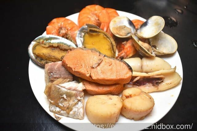 海鮮拼盤的內容超豐富,有 白蝦、日本生食級干貝、九孔鮑魚、蛤蠣、鮭魚菲力片、鱸魚菲力、透抽,白蝦煮起來不縮水,薄殼好撥,日本生食級干貝鮮甜可口,九孔鮑魚、透抽 吃起來Q彈的口感,鮭魚菲力吃起來的口感較紮實,而鱸魚菲力的肉質較鮮嫩,豐盛的海鮮拼盤,享受最新鮮的海味。