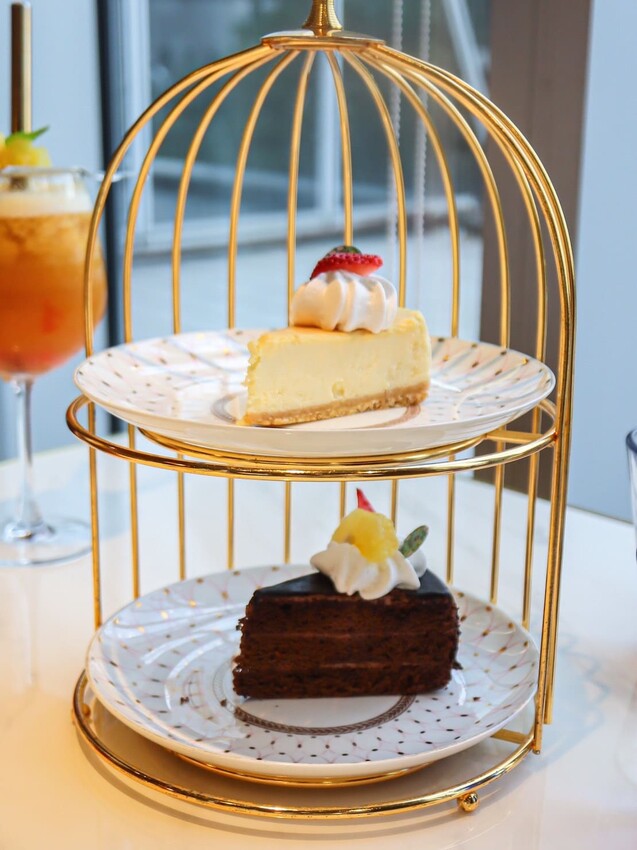 ▼常常看電影裡歐洲的貴婦們享用下午茶,甜點真的就是用這種兩層蛋糕塔裝~金光閃閃的外觀看起來很有質感。在這裡用餐的確很有置身歐洲用餐的儀式感啦XD