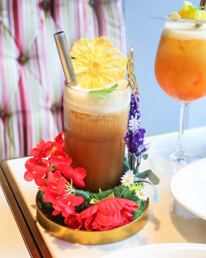 ▼浮誇系的飲品還被封塵在花海中🤣開蓋的同時玻璃罐裡的花海立刻炸出來~外觀真的很精緻耶!看到這個就突然想到美女與野獸的電影XD