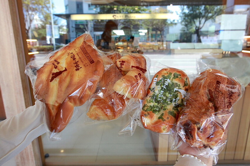小高就在店外直接拍照與各位分享,這麵包有三星蔥包30元、羅宋70元、丹麥紅豆80元小可頌65元等。