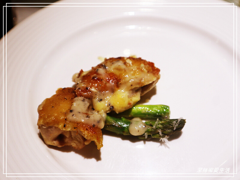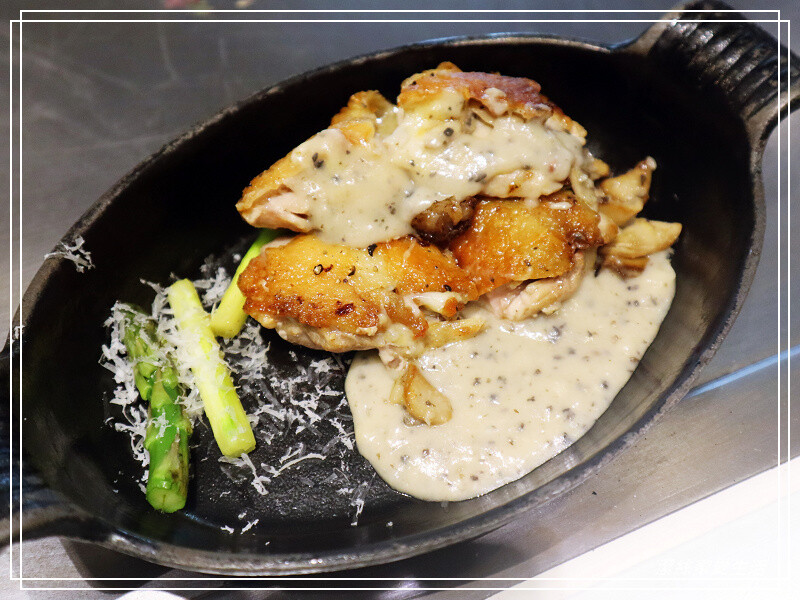 雞腿肉厚實,煎得焦香可口,單吃就很美味;而搭配起司更帶出香氣,醬汁濃郁但不膩口,這道很美味,我們都好愛。