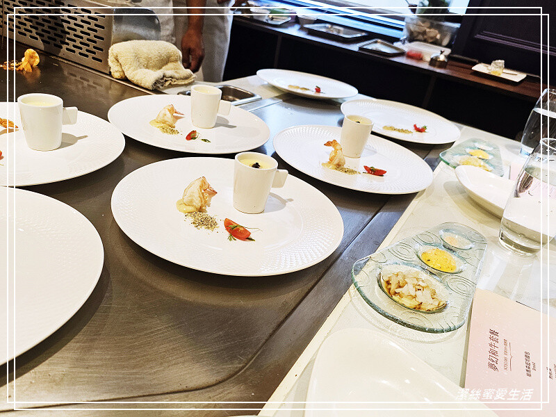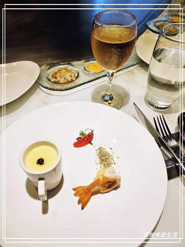 前菜是松露蒸蛋及鮮蝦,滑嫩鮮美很不錯,汽泡飲喝完,服務人員會主動過來加。