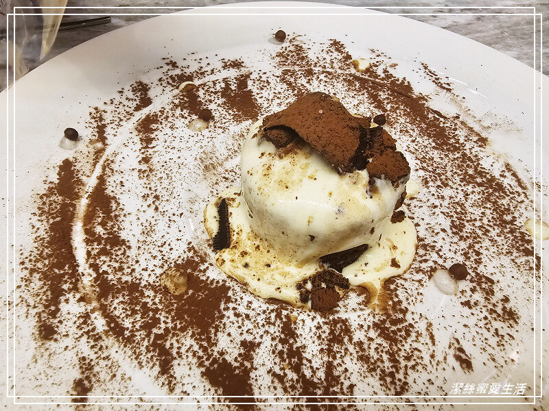 這個有點有趣~將蛋糕膠膜撕開後,提拉米蘇慕斯就會流洩而下包覆住布朗尼,很好玩哦😄。