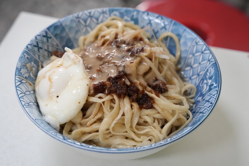 招牌的擀麵以乾麵方式呈現,搭配麻醬、油蔥酥、蒜蓉等佐料