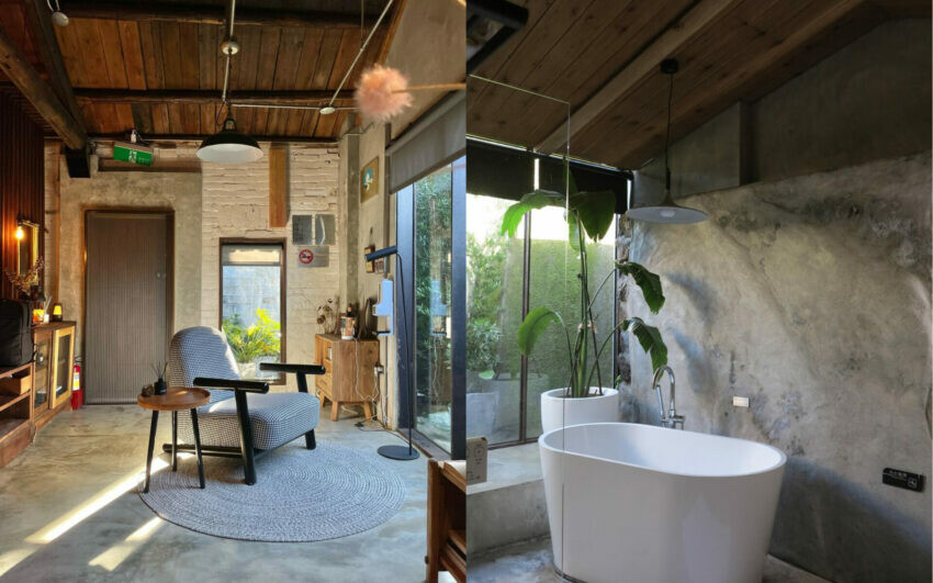 是一家位在宜蘭五結鄉的清水模包棟住宿,頗有美術館既視感的藝術建築外觀,配上周圍的宜蘭田野度假氛圍就已經滿載,每個角落都是兼具質感工業風巧思。設備部分更是多到玩不完,包含基本的戶外戲水池、按摩浴缸、卡拉OK、Switch、麻將桌,竟然還有俱樂部的烤箱、房內還有超大投影幕劇院及夢幻盪鞦韆,吃的部分有開放式廚房、烤肉設備,下午還可以來一頓泳池漂浮下午茶,各種意想不到的內容設備超齊全,包準你玩到不想走。