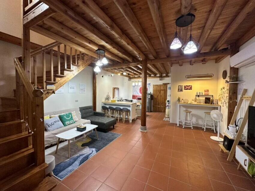 位於高雄駁二的,保留了老屋的獨特風貌,室內以紅磚瓦牆面、木材等元素打造,而天井更是讓室內變得明亮,讓這裡變得舒適又充滿故事性。從一樓望出去,能看見天井所帶來的光影交錯。二樓小廚房,廚具、小點心一應俱全,客廳有書籍、桌遊及麻將可以遊玩。而這裡更是高雄觀光局認證的性別友善旅宿之一唷。
