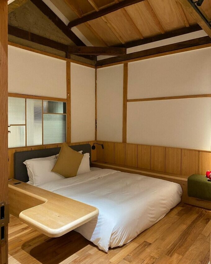 是一間超過一甲子的日式檜木老宅民宿,保留著原木建築,佐以現代時尚的設計元素,讓環境有著高級質感的氛圍,卻又不失歷史人文的氣息。用歲月堆疊成的日式老屋,彷彿走入了另一個時空,讓人忘記自己人在嘉義,其實不遠處就是文化路夜市、火車站等。這裡採包棟式服務,除了住宿設備齊全,還有廚房、咖啡機可以盡情使用喔。