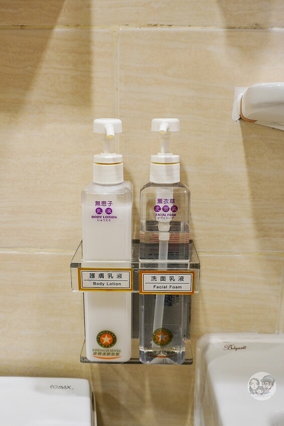 洗手台旁提供薰衣草洗面乳和無患子身體乳,