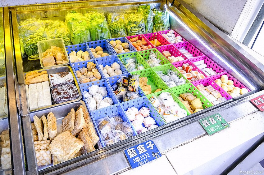 右邊這區主要就是火鍋料,可以看到還會用顏色區分價錢,同價位的排在一起,一目瞭然很容易辨認。
