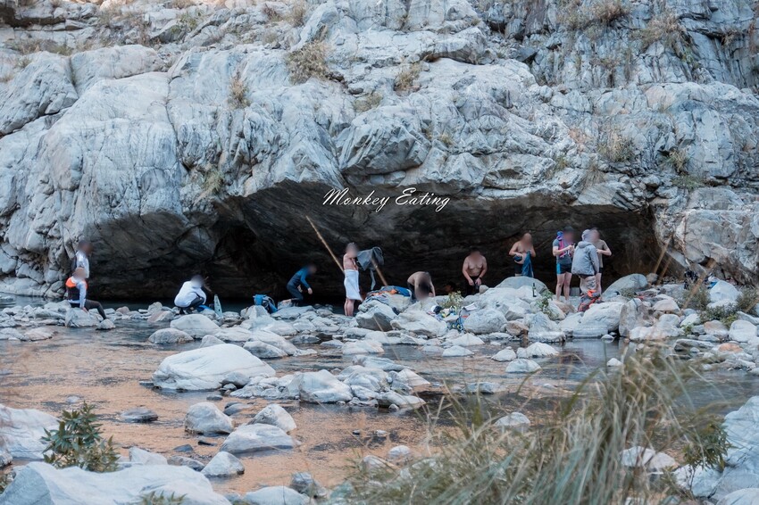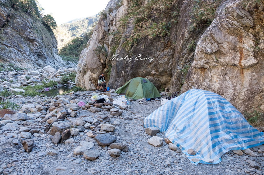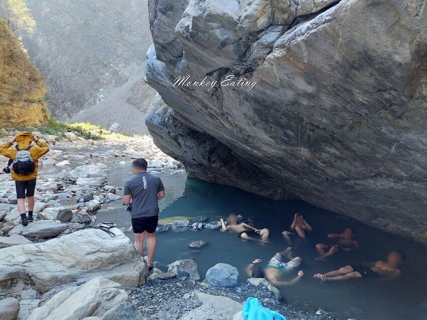 步行約5K終於抵達馬陵溫泉,看到巨大岩石區下方有個圍起來的池子就是了,一早就有不少人在泡溫泉。要紮營的話,溫泉旁邊有塊小腹地,還有溫泉對面也有塊地可以搭帳篷。如果太晚到很快就沒位置,就要再往裡面找,或是前面經過的小空地找點了。