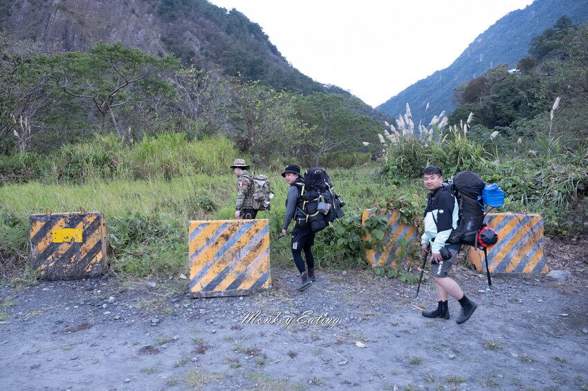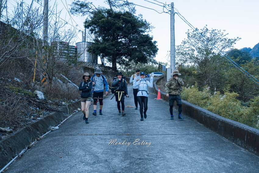 我們約5點豐原出發,大概抓1小時初抵達目的地,運氣不錯還有車位,接近早上6點半差不多天亮開始走剛剛好,沿著指示牌下到露營區,從旁邊路障進入草叢就能看到有路跡,不確定方向的朋友可以先下載好離線地圖,比較不會走錯。