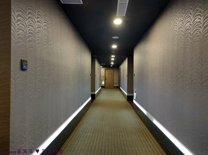 飯店樓層走廊是鋪地毯.