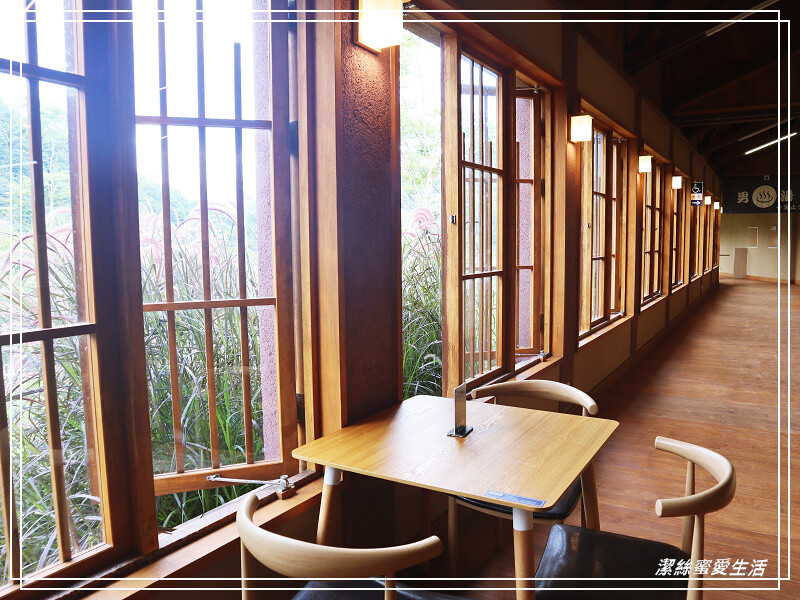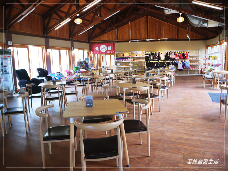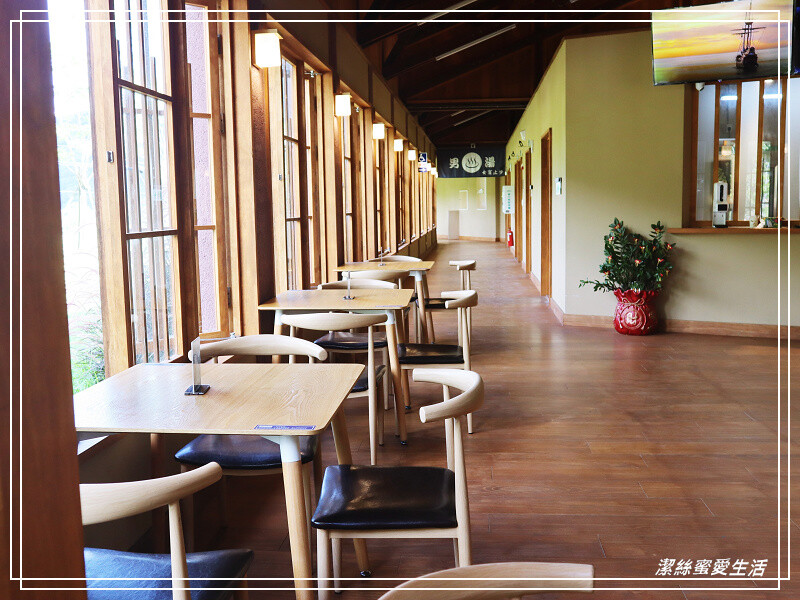 空內室間蠻大的,有不少內用桌,男湯女湯入口分別在櫃台的左右兩邊分開,都必須穿著泳衣泳帽才能進去泡。
