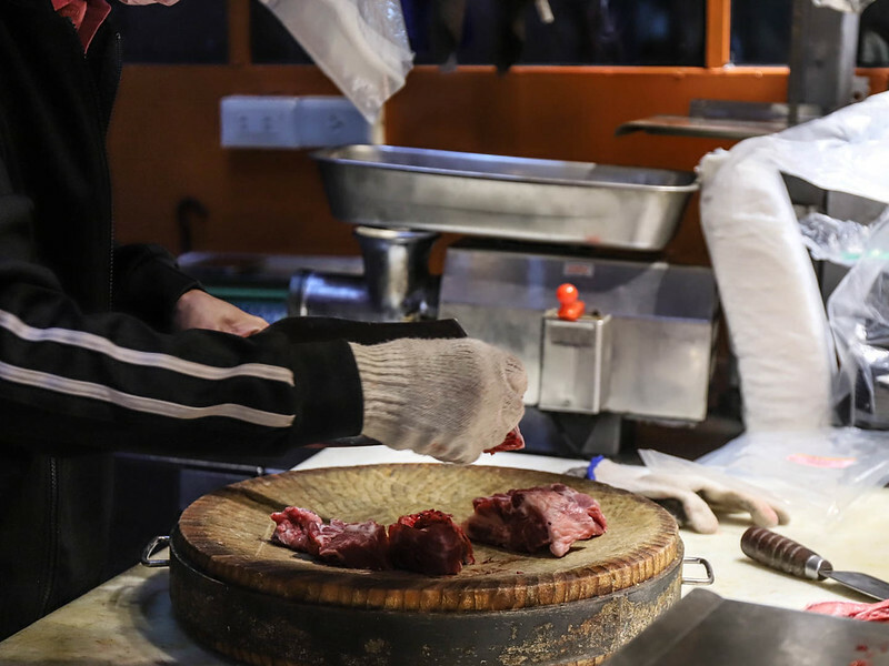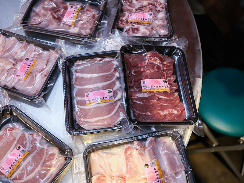 當天遇到客人現場選購,一片片切好還擺盤,往常路過豬肉攤大多是都是切好直接用塑膠袋裝起來系上紅色塑膠繩,回到家如果偷懶直接整陀冷凍就會集結成團,顛覆傳統市場模式,給予高規品質。