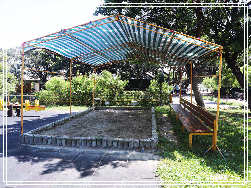 連沙坑都有哦!而且蠻大的,上頭還有頂篷遮陽很貼心,記得玩沙工具要自備哦。