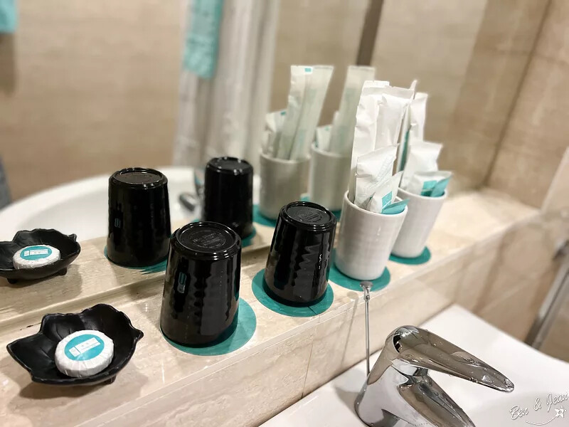 浴室使採用淋浴間的形式,基本的備品都俱備,但吹風機是壁掛式的,這點不是那麼方便