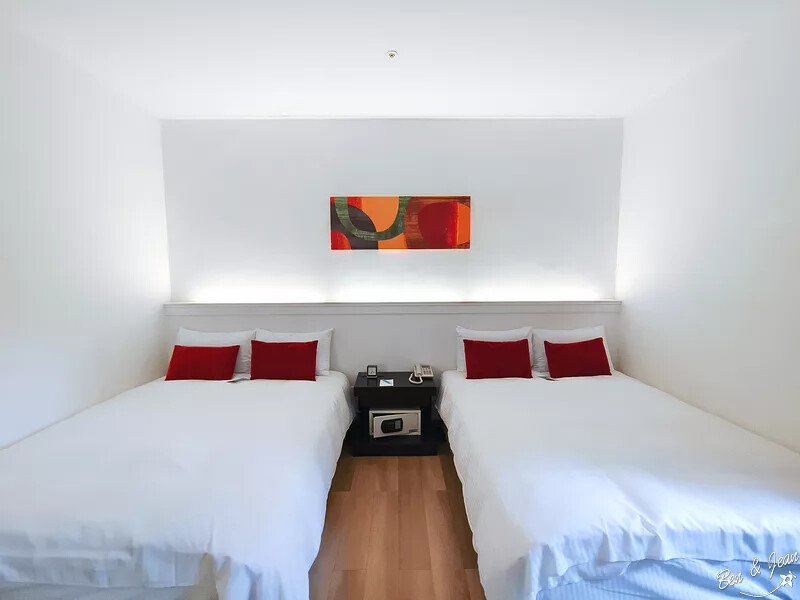 我們入住的是精緻家庭房 。房內有兩大床,空間約 8 坪,這樣的空間算是滿寬敞的