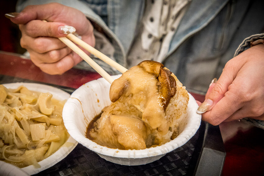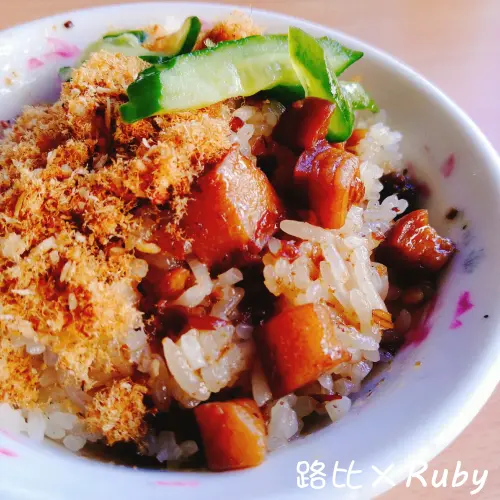米糕,米粒屬於軟糯那一種,肥瘦各半米粒很軟,小孩老人牙口不好的也能輕鬆吃,醬料上屬於甜鹹甜鹹的也不會辣,建議均勻攪拌後再吃,讓醬汁能沾附在每一粒米飯上,整個美味感完全提升,愛吃辣的朋友可以加一點辣醬更讚