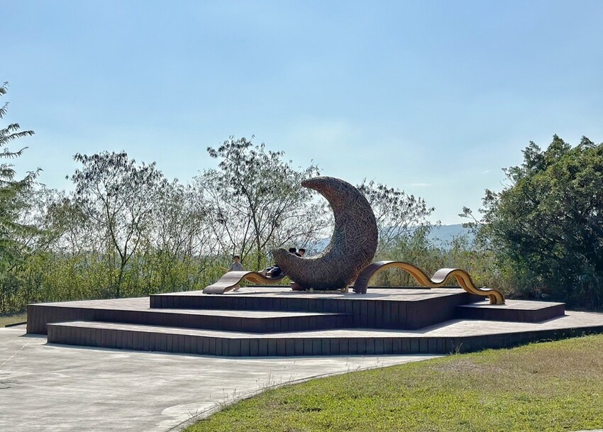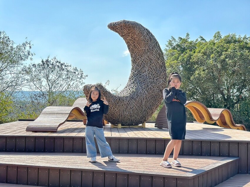 走完156個階梯就可以看到月池喔!而弦月觀景台,主要就是一個竹編的弦月裝置藝術,拍照打卡還挺有意思!