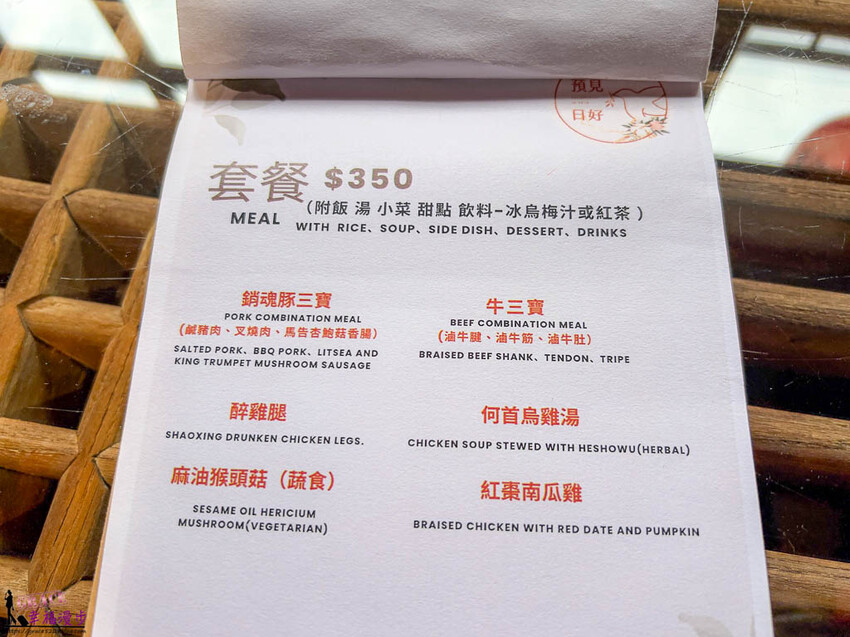 這裡是以套餐為主,套餐的價格都是350元,都有附飯、湯、小菜、甜點和飲料。