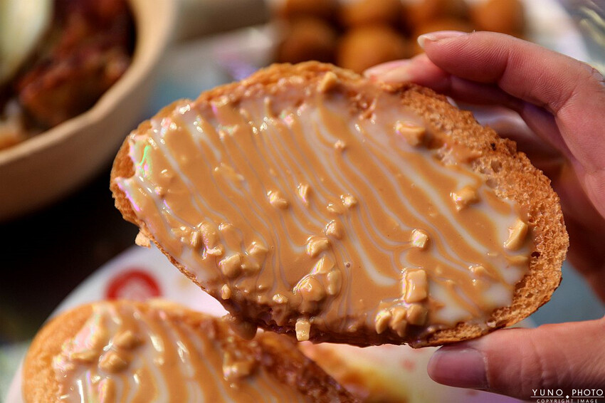 花生控必點 烤得酥酥脆脆的麵包體 上頭塗著滿滿的花生醬