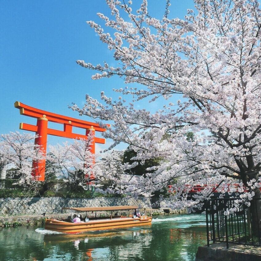過去往返京都與大阪的貨物運輸工具十石舟與三十石船,如今已轉為觀光用途,遊客可以乘船欣賞沿岸京都櫻花,悠閒拍下櫻花、楊柳與傳統建築美照,不費體力、價格實惠,讓伏見十石舟人氣不墜,是著名京都櫻花景點之一。幸運的話,乘船之際還可以目睹櫻吹雪美景,日本櫻花花瓣隨風飄散至河面上,是來京都賞櫻花的遊客最嚮往的一景。
