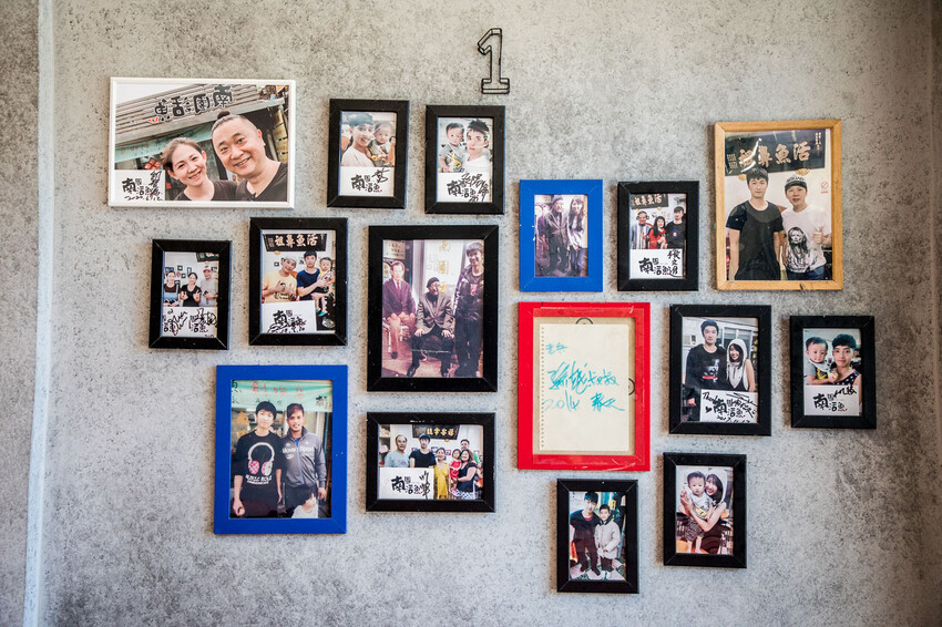 以石門水庫其他活魚餐廳來說,南園活魚老店餐廳真的算是非常小,大概就五~六桌而已,走一個小而美且精緻的路線,牆壁上有很多名人造訪的留影,上面也掛著『活魚始祖』的牌匾,要來這用餐一定要事先訂位才有得吃,臨時跑來極大的機率吃不到